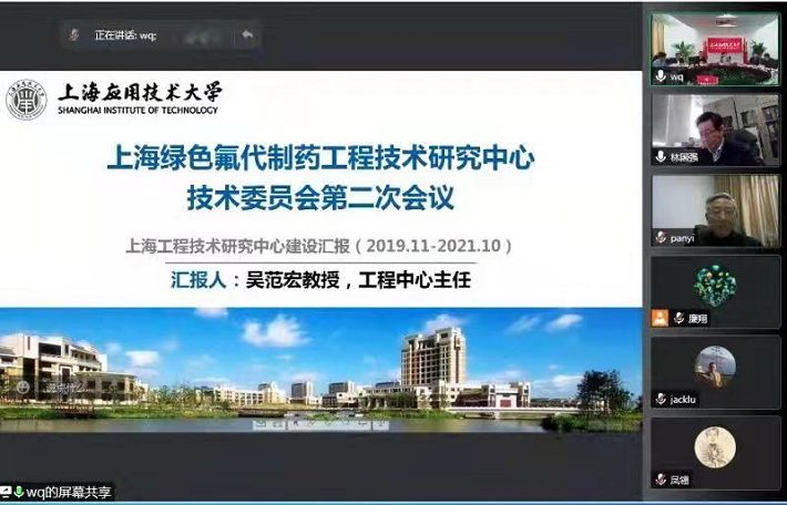 11月24日,上海绿色氟代制药工程技术研究中心(以下简称工程中心)召开2021年工程中心技术委员会会议,中国科学院院士林国强教授、中国工程院院士陈芬儿教授、中国工程院院士任其龙教授、中国科学院院士俞飚教授、东华大学副校长卿凤翎教授、华东理工大学副校长朱为宏教授、南京大学潘毅教授等16位技术委员会委员及30余位共建单位企业嘉宾出席。上海应用技术大学校长柯勤飞出席并致辞。