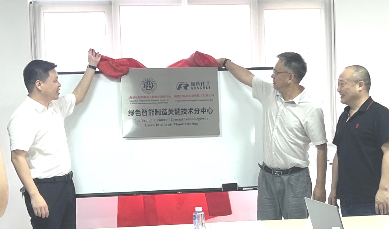 随后,邵武市常务副市长陈可兴为公司揭牌并祝贺上海绿色氟代制药工程技术研究中心—绿色智能制造关键技术分中心在福建省邵武市榕辉化工有限公司正式成立。