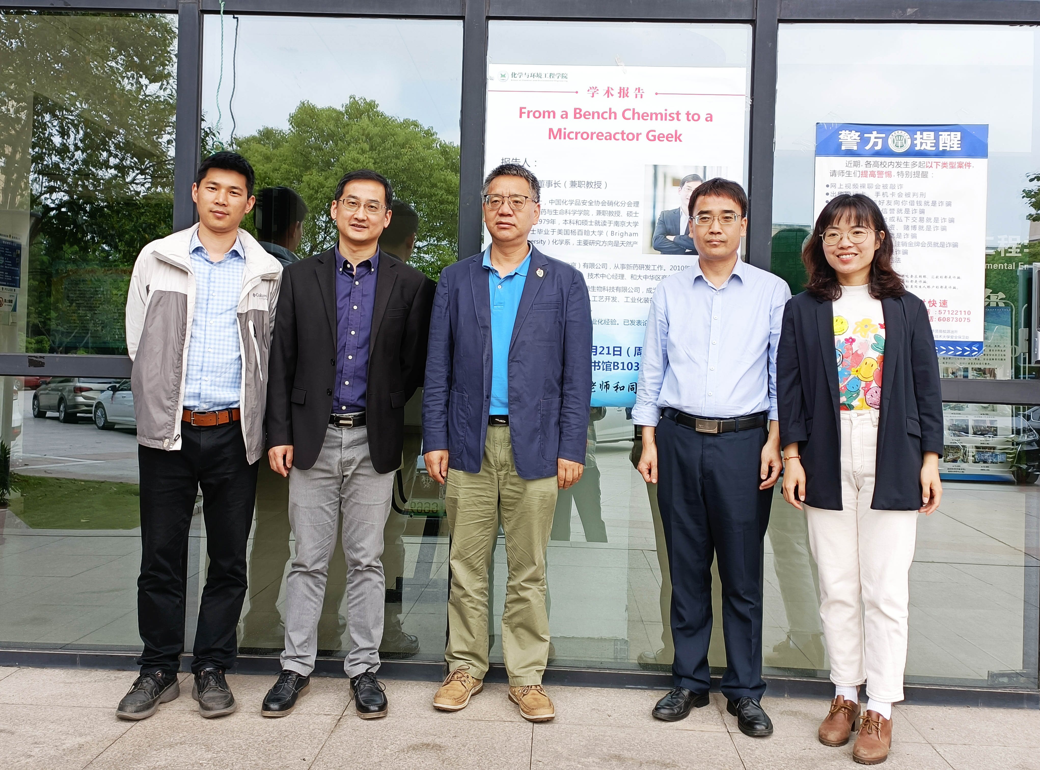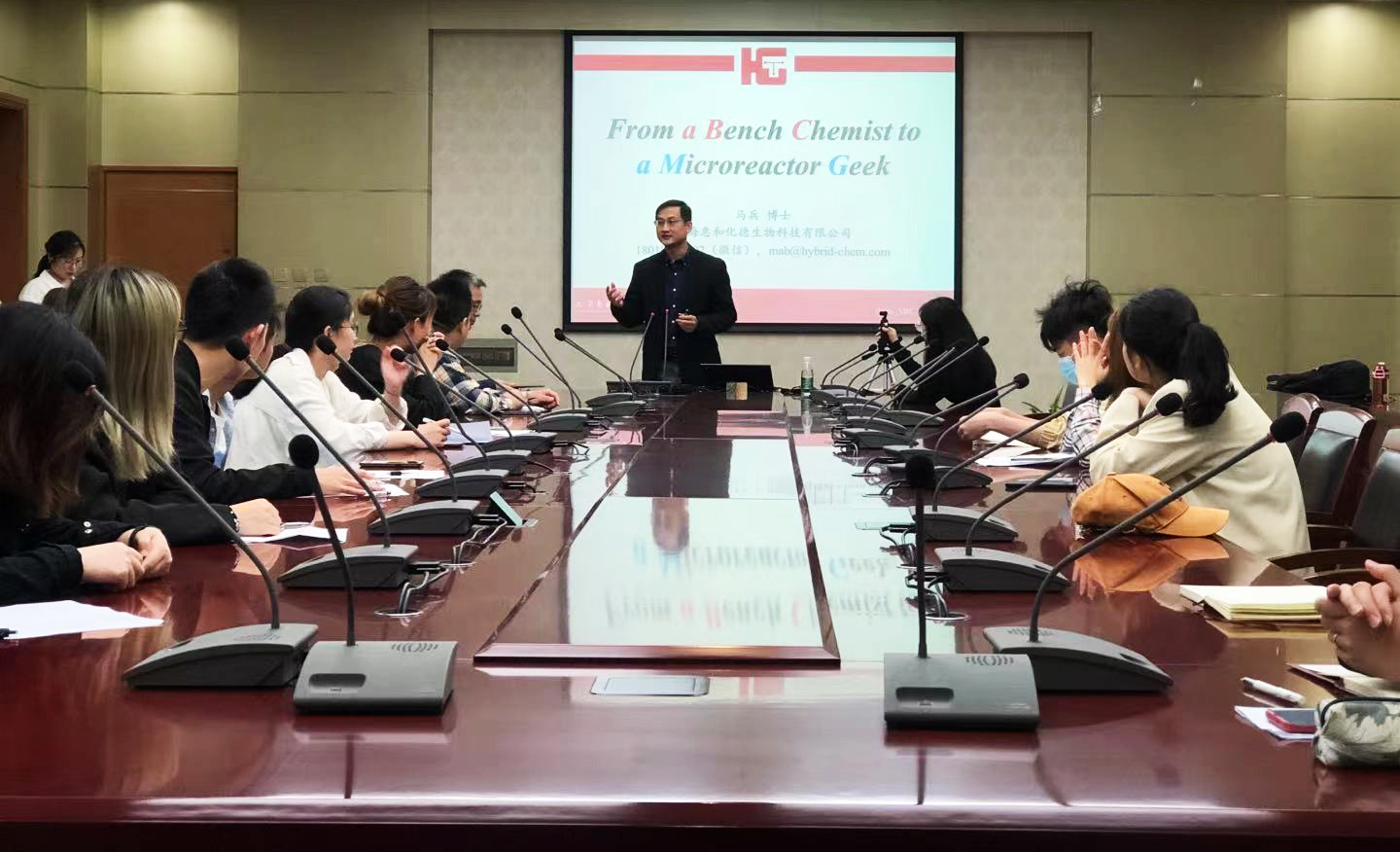5月21日上午,上海惠和化德生物科技有限公司董事长马兵一行应上海绿色氟代制药工程技术研究中心邀请来校进行合作交流,并为化工学院制药工程专业研究生作了题为“From a Bench Chemist to a Microreactor Geek”的学术报告,报告由“工程中心”主任吴范宏教授主持。
